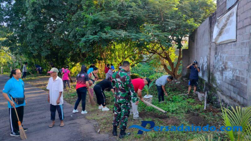 Buleleng, 16 Agustus 2025 — Suasana kebersamaan terlihat di Lingkungan Peguyangan Bayu Suta, Kelurahan Astina, Sabtu pagi (16/8). Babinsa Kopda Ida Bagus Ngurah Prianta bersama Bhabinkamtibmas Aiptu Ketut Gina, staf kelurahan, serta warga sekitar bergotong royong melakukan bersih-bersih lingkungan sekaligus penanaman bibit pohon kelapa.