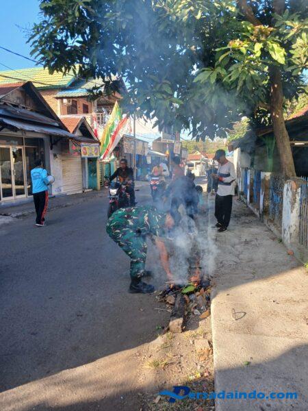Kegiatan dimulai sejak pagi hari dengan membersihkan area lingkungan permukiman, selokan, dan jalan-jalan utama di sekitar RT/RW setempat. Serda Kardin terjun langsung bersama masyarakat, menyapu, mencabut rumput liar, serta mengangkat sampah-sampah yang berserakan. Usai kegiatan bersih-bersih, dilanjutkan dengan pemasangan bendera Merah Putih di sepanjang jalan dan depan rumah warga sebagai bentuk penghormatan terhadap perjuangan para pahlawan dan semangat kemerdekaan.