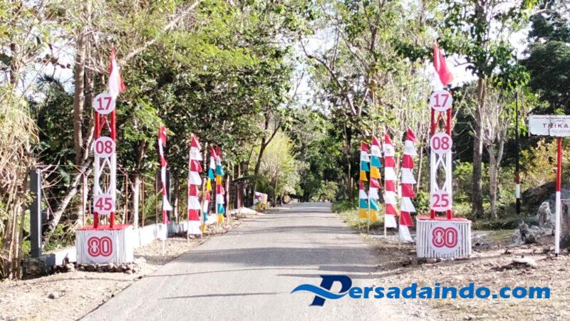 Rangka bambu yang kokoh dipadukan dengan bendera merah putih, umbul-umbul yang berderai di tiupan angin., Keindahan ini bukan hanya untuk menyambut tamu yang datang, tetapi juga menjadi kebanggaan tersendiri bagi warga desa Nian.