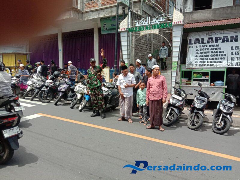 Babinsa Semarapura Kangin Serka Nyoman Suartana menyampaikan bahwa siang ini bersinergi bersama nggota Badan Keamanan Kampung ( BKK) Kampung Muslim Lebah Kelurahan Semarapura Kangin melaksanakan pengamanan untuk memastikan pelaksanaan sholat jumat aman dan lancar.