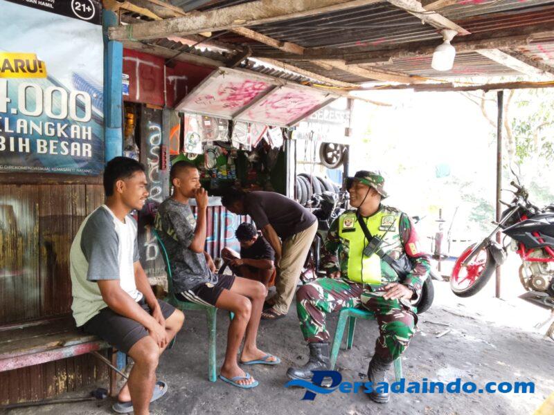 Ende, – Babinsa Koramil 1602-02/Wolowaru, Serda Antonius Wae, melaksanakan kegiatan Komunikasi Sosial (Komsos) dan Pengamanan Wilayah (Pamwil) di Desa Nua Lise, Kecamatan Wolowaru, Kabupaten Ende, Jumat pagi (03/11). Kegiatan ini berlangsung dari pukul 09.00 WITA hingga selesai dengan aman dan tertib.