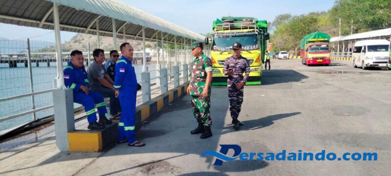 Sumbawa Barat, NTB — Anggota Koramil 1628-04/Poto Tano, Babinsa Desa Kokarlian Serda Beni Eka S, melaksanakan kegiatan pengamanan di Pelabuhan Penyeberangan Poto Tano, Kecamatan Poto Tano, Kabupaten Sumbawa Barat.