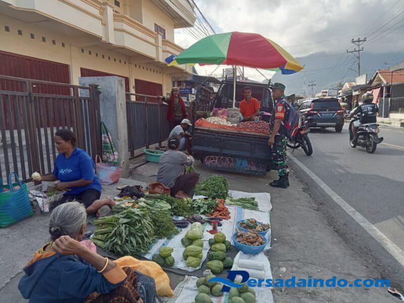 “Kami hadir di tengah masyarakat untuk memastikan kondisi keamanan tetap terjaga dan aktivitas jual beli berjalan lancar tanpa gangguan,” ujar Serda Damianus.