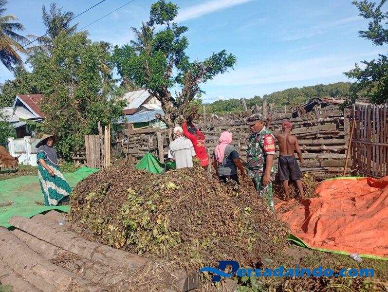 Setelah berdialog dengan warga, Babinsa melanjutkan kegiatan dengan turut membantu proses perontokan kacang milik warga setempat. Kegiatan ini menjadi bukti nyata komitmen TNI dalam hadir dan bekerja bersama masyarakat, tidak hanya dalam aspek keamanan namun juga mendukung produktivitas pertanian.