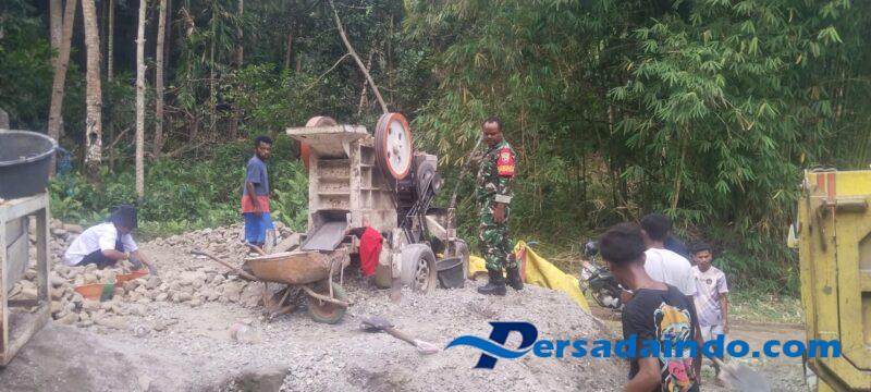 Ende, Dalam rangka mempererat kemanunggalan TNI dan rakyat, Babinsa Koramil 1602-01/Ende, Serda Roni Tampani, melaksanakan kegiatan Komunikasi Sosial (Komsos), Pengamanan Wilayah (Pamwil), dan karya bakti bersama masyarakat di Desa Riaraja, Kecamatan Ende, Kabupaten Ende.