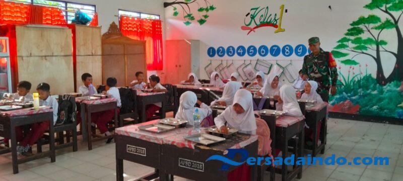 Sumbawa Barat – NTB, Dalam rangka mendukung program pemerintah di bidang kesehatan dan pendidikan, Babinsa Desa Sermong Koramil 1628-01/Taliwang, Serda Ruslin, melaksanakan pendampingan kegiatan Makan Sehat Bergizi (MSG) di SDN Sermong, Kecamatan Taliwang, Kabupaten Sumbawa Barat, Senin (17/11/2025) pukul 08.30 WITA.