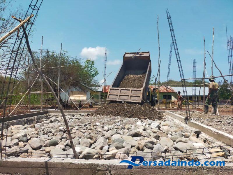 NTT-KUPANG, – Memasuki hari ke-16 Program Kolaborasi Pembangunan SMPN Oepoli di Desa Netemnanu Utara, Kecamatan Amfoang Timur, Kabupaten Kupang, pada Selasa, 4 November 2025, kegiatan fisik terus menunjukkan perkembangan positif. Tim tukang Kodim 1604/Kupang yang dipimpin oleh Serka Bambang Sudarsono melaksanakan pekerjaan melanjutkan pemasangan batako dan penimbunan material di ruang pondasi bangunan sekolah tersebut.