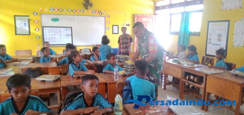 Rote Ndao – Babinsa Koramil 1627-01/Ba’a Serka David Bullen melaksanakan pendampingan dan pengamanan kegiatan Program Makanan Bergizi Gratis (MBG) yang digelar oleh Satuan Pelayanan MBG Kabupaten Rote Ndao, bertempat di Kompleks Perkantoran Ti’i Langga Permai, Jln Lekunik, Kelurahan Mokdale, Kecamatan Lobalain, Kabupaten Rote Ndao, pada Selasa (28/10/2025) pukul 07.00 Wita.