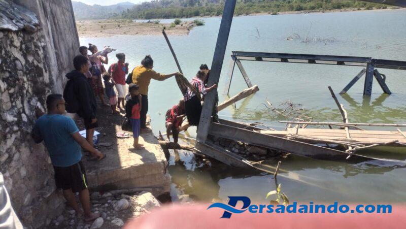 Kondisi sungai Termanu yang meluap membuat akses utama tidak dapat dilalui kendaraan, sehingga warga terpaksa menggunakan jembatan darurat untuk menyeberang. Melihat situasi berbahaya tersebut, Babinsa yang tengah melaksanakan patroli wilayah segera sigap membantu warga yang kesulitan menyeberang, terutama ibu dan anak-anak yang rentan terhadap risiko terpeleset atau terseret arus.