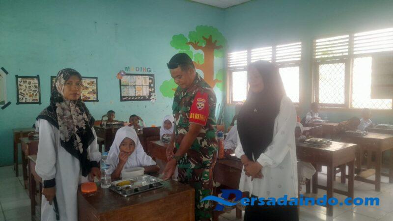 Sementara itu di Kelurahan Sadia Kecamatan Mpunda, Serma Irfan mendampingi pembagian 258 paket makan bergizi kepada pelajar SDN 14 Kota Bima. Pembagian dilaksanakan dalam dua tahap mulai pukul 08.00 – 10.00 Wita. Menu makan terdiri dari nasi hainan, ayam hainan, tahu goreng, capcay, dan buah kelengkeng yang sehat dan bergizi.