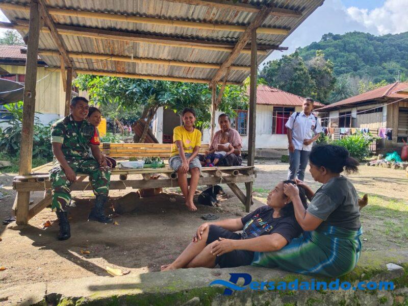 Ende, Babinsa Kodim 1602-01/Ende Serka Piter Kase melaksanakan kegiatan komunikasi sosial (Komsos) dan pengamanan wilayah (Pamwil) di Dusun Onebare, Desa Emburia, Kecamatan Ende, pada Minggu pagi pukul 09.30 WITA.
