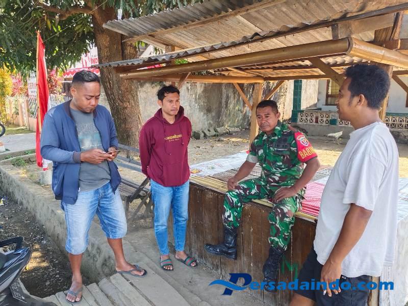 Ende, Serka Piter Kase, Babinsa Koramil 1602-01/Ende, melaksanakan kegiatan Monitoring, Pengamanan Wilayah (Pamwil), dan Komunikasi Sosial (Komsos) bersama masyarakat Dusun Nangaba, Desa Rukuramba, Kecamatan Ende, Kabupaten Ende, Jumat pagi (22/8).