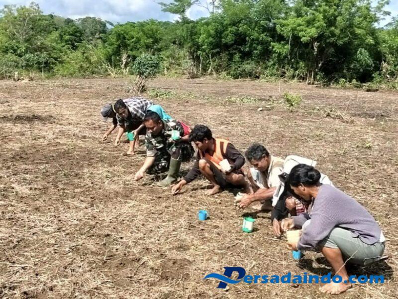SUMBA BARAT – Babinsa Koramil 02/Walakaka Kodim 1613/Sumba Barat, Serka Ramli, bersama warga melaksanakan kegiatan penanaman padi ladang di Desa Sodana, Kecamatan Lamboya, Kabupaten Sumba Barat, Rabu (12/11/2025).