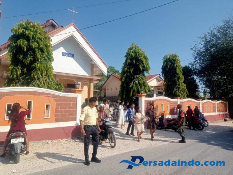 Ende, Babinsa Koramil 1602-04/Maurole, Kodim 1602/Ende, bersama aparat Polsek Maurole dan tim pengamanan internal gereja melaksanakan kegiatan p...