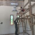 KODIM 1605/BELU, Babinsa Koramil 1605-09/Biudukfoho Sertu Henry Rumamelete ikut membantu dalam proses pembangunan Gedung Gereja GMIT Musafir Kot...