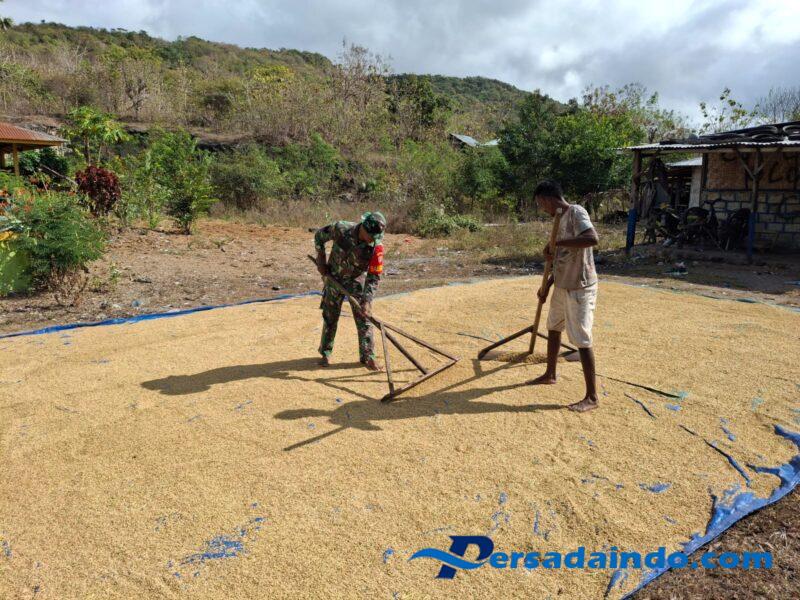 • Serma Yohanes Ratu Andung Dampingi Petani Jemur Padi Meski di Hari Libur