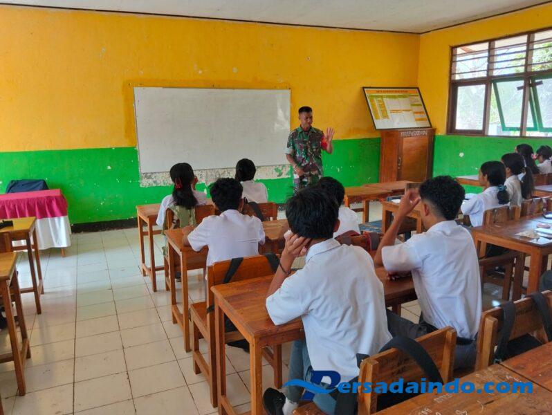 Rote Ndao – Babinsa Koramil 1627-03/Batutua, Serma Yusuf Tungga, melaksanakan kegiatan pembinaan wawasan kebangsaan (Wasbang) dan bela negara bagi siswa-siswi kelas XI di SMAN Filial Loaholu, Desa Oelua, Kecamatan Loaholu, Kabupaten Rote Ndao, Selasa (30/9/2025).