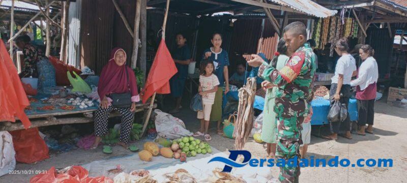 Rote Ndao — Dalam rangka menjaga keamanan wilayah sekaligus memantau kondisi ekonomi masyarakat, Babinsa Koramil 1627-02/Pantai Baru, Sertu Camilo Desosa, melaksanakan kegiatan monitoring dan pengamanan (PAM) di Pasar Tradisional Lalao, Dusun Lalao, Desa Lakamola, Kecamatan Rote Timur, pada Selasa (21/10/2025) pukul 09.00 WITA.