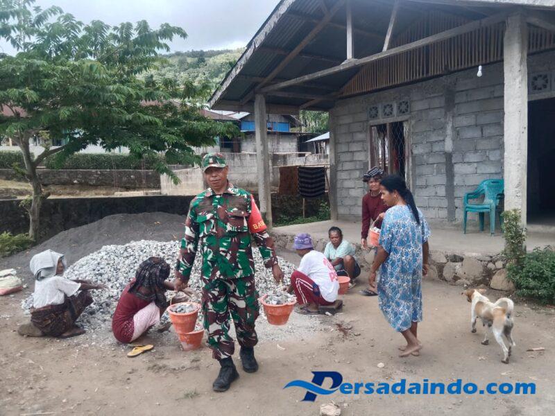 NTT-SIKKA. Babinsa Koramil 1603-01/Alok, Kopda Faisal Daingtjumping, melaksanakan pendampingan penurunan material berupa pasir untuk mendukung p...