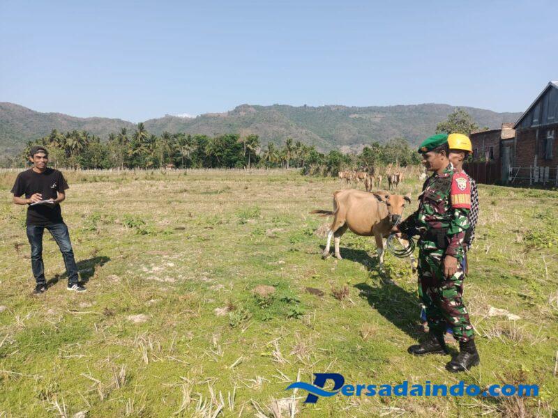 Sumbawa Barat – NTB, Dalam rangka mendukung program pemerintah di bidang peternakan, Babinsa Desa Seteluk Tengah, Koramil 1628-03/Seteluk, Sertu Dahlan, melaksanakan pendampingan kegiatan registrasi hewan ternak yang digelar oleh Dinas Pertanian, Perkebunan dan Peternakan Kabupaten Sumbawa Barat melalui Pusat Kesehatan Hewan (Puskeswan) Kecamatan Seteluk, Selasa (07/10/2025).