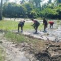Belu, – Prajurit Pos Fohuk Satgas Pamtas RI–RDTL Sektor Timur Yonarmed 12 Kostrad melaksanakan kegiatan karya bakti bersama para siswa SMP N...