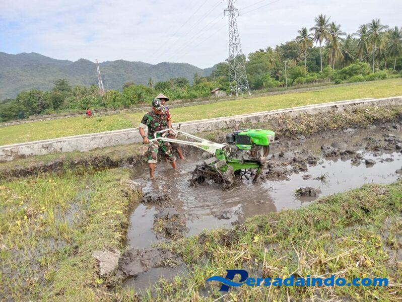 Ende — Dalam rangka mendukung program Ketahanan Pangan (Han Pangan) dan mempererat komunikasi sosial (komsos) dengan masyarakat, Babinsa Koramil 1602-04/Maurole, Sertu Denis Fernandes, melaksanakan kegiatan pembajakan sawah bersama Kelompok Tani “Sinar Wajah Baru” di Desa Tou Barat, Kecamatan Kotabaru, Kabupaten Ende, Jumat (22/08/2025).