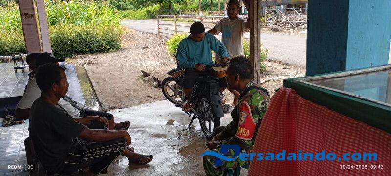 Ende, Babinsa Koramil 1602-04/Maurole, Sertu Denis Fernandes, melaksanakan kegiatan komunikasi sosial (Komsos) dan pengamanan wilayah (Pamwil) di Dusun 2 Roja Bai, Desa Ndondo, Kecamatan Kota Baru. Kegiatan ini berlangsung pada hari Minggu pagi mulai pukul 09.19 WITA hingga selesai dengan suasana yang aman dan kondusif.