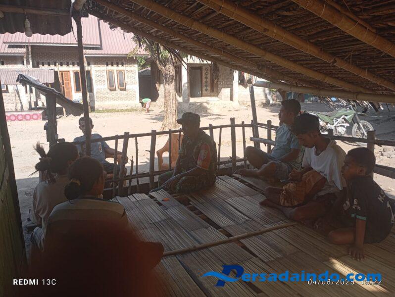 Ende, Babinsa Koramil 1602-04/Maurole, Sertu Denis Fernandes, melaksanakan kegiatan Komunikasi Sosial (Komsos) dan Pengamanan Wilayah (Pamwil) di Desa Rangalaka, Kecamatan Kotabaru, Kabupaten Ende, pada Selasa pagi (5/8/2025).