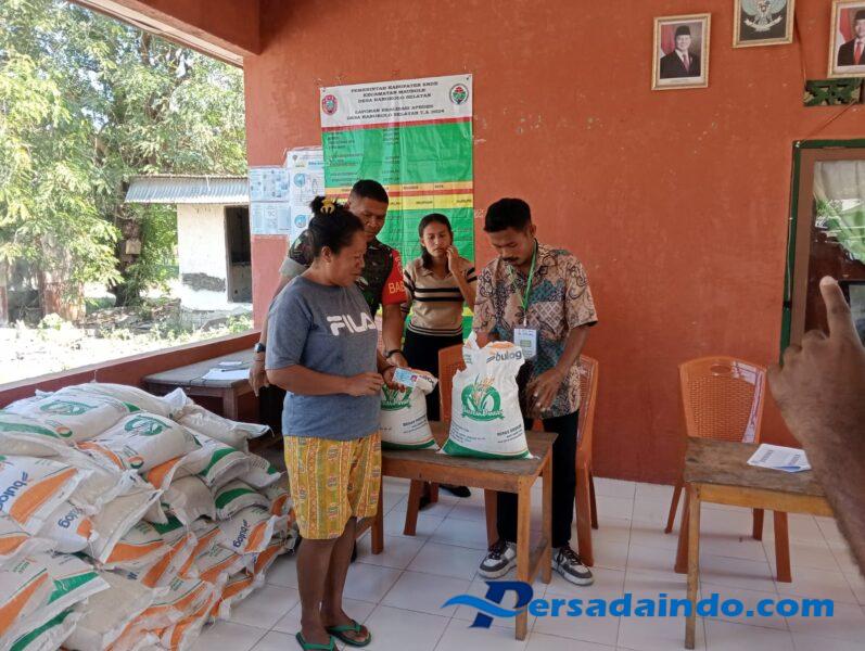 Ende, Dalam rangka mendukung kelancaran program Bantuan Pangan Cadangan Beras Pemerintah (CBP) tahun 2025, Babinsa Koramil 1602-04/Maurole, Sertu Donatus Kiri, melaksanakan kegiatan pengawasan dan pengamanan distribusi bantuan kepada warga Desa Ranokolo Selatan, Kecamatan Maurole, Kabupaten Ende.