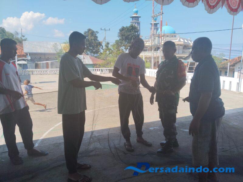 Dalam kegiatan tersebut, Babinsa bersama masyarakat melakukan pembenahan jalak atau area lapangan guna mempersiapkan pelaksanaan pertandingan bola voli yang akan digelar di wilayah tersebut. Kegiatan ini menjadi bagian dari upaya menjaga keamanan dan membangun hubungan erat antara TNI dan masyarakat.