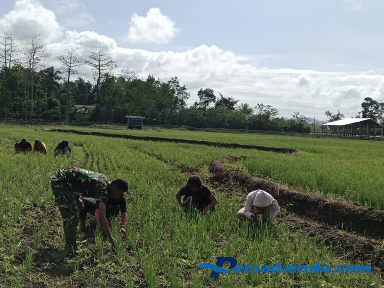 SUMBA BARAT – Dalam rangka mendukung program ketahanan pangan, Babinsa Koramil 01/Loli Kodim 1613/Sumba Barat, Sertu Fahrurrahman, melaksanakan kegiatan pemeliharaan tanaman bawang di kebun percontohan ketahanan pangan Kodim 1613/Sumba Barat yang berada di Kelurahan Pada Eweta, Kecamatan Kota Waikabubak, Kabupaten Sumba Barat, Sabtu (20/9/2025).