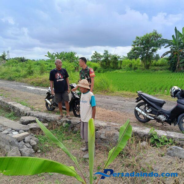 Sebagai bagian dari tugas pembinaan teritorial, Babinsa Desa Tegal Tugu Koramil 1616-01/Gianyar, Sertu I Made Sukajaya, melaksanakan kegiatan komunikasi sosial (Komsos) bersama petani setempat, I Wayan Suartika, di area persawahan Subak Sukun, Desa Tegal Tugu, Kecamatan Gianyar, Kabupaten Gianyar.