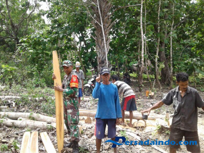 Kegiatan gotong royong tersebut dilakukan dalam rangka penebangan pohon jati milik Bapak Samuel Mbolik, yang akan digunakan untuk proses pembangunan rumah. Dalam suasana penuh kebersamaan, Babinsa turut membantu warga sekaligus memberikan himbauan penting kepada masyarakat terkait keamanan dan kebersihan lingkungan.