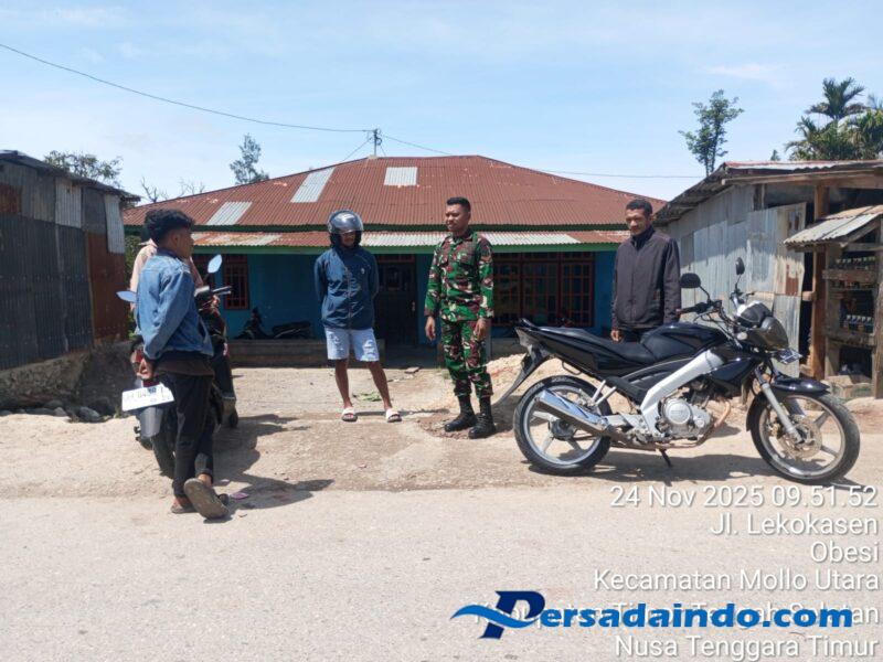 Mollo Utara – Babinsa Koramil 1621-03/Mollo Utara terus menunjukkan kepeduliannya terhadap keamanan dan kenyamanan masyarakat. Pada Senin, 24 November 2025, personel piket yang terdiri dari Sertu Silvester dan Kopda Daud Hama melaksanakan monitoring wilayah di sekitar Pasar Kapan, Kecamatan Mollo Utara.