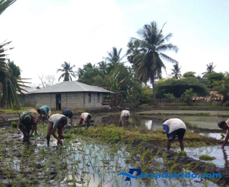 Kegiatan pendampingan ini merupakan bentuk nyata peran TNI AD dalam membantu masyarakat, khususnya petani, guna meningkatkan produksi pertanian. Sertu Yohan Saekoko bersama para petani terlihat semangat bekerja sama menanam padi di lahan persawahan milik warga.