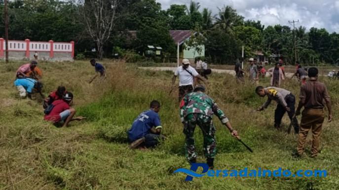 Persadaindo.com – NTT-KUPANG, – Babinsa Oenoni II dari Koramil 1604-04/Amarasi, Serka Hery Sujibto bersama Bhabinkamtibmas, Kepala Desa Oenoni II, perangkat desa, dan masyarakat Dusun 1 hingga Dusun 3 melaksanakan kegiatan Karya Bakti pembersihan Lapangan Umum di Dusun 3, Desa Oenoni II, Kecamatan Amarasi, Kabupaten Kupang, pada hari ini.