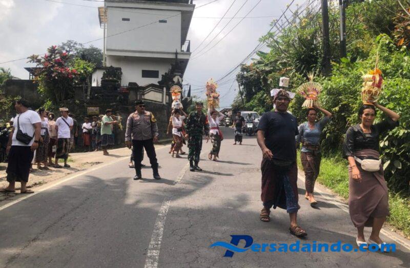 Kehadiran Babinsa bersama unsur terkait menunjukkan sinergitas TNI-Polri dan pecalang dalam mendukung kelancaran serta keamanan upacara adat di wilayah binaan.