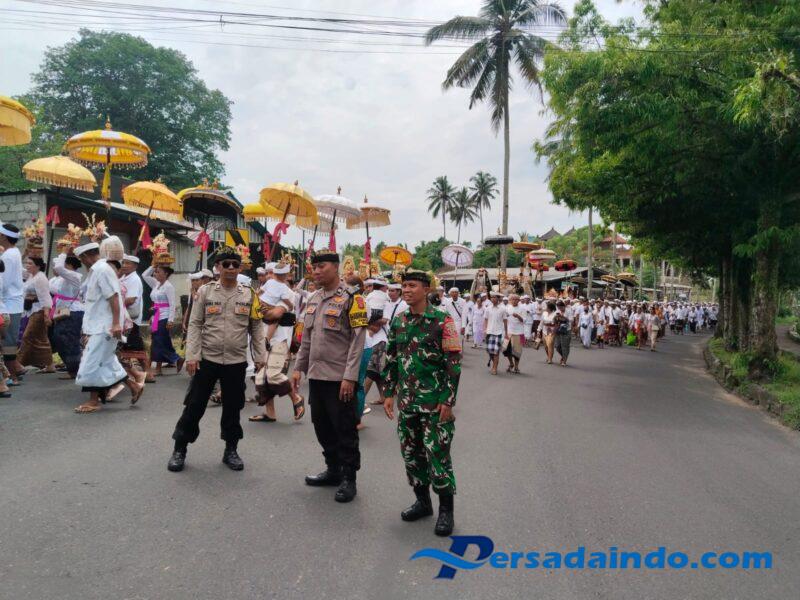 Gianyar – Samplangan, Minggu (30/11/2025) Ratusan warga mengikuti kegiatan tradisi adat Ngelungaang, Babinsa Kelurahan Samplangan Koramil 1616-01/Gianyar Serka I Komang Yudiartana bersama Bhabinkamtibmas Samplangan berkolaborasi dengan Pecalang Desa Adat Bukit Batu melaksanakan pengamanan serta pengaturan arus lalu lintas dalam rangka Ngiring Sesuhunan Pura Pucak Bukit Langkian dan Pura Dalem Desa Adat Bukit Batu menuju Pura Pucak Bukit Sari, Desa Adat Sidan, Gianyar.
