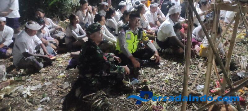 Kubutambahan : Bila, Bersinergi Babinsa Desa Bila (Kopka Made Mahardika), Bhabinkamtibmas dan Pecalang Desa Adat Bila melaksanakan pengawalan dan pengamanan upacara Nyanjan di Pura Desa Adat Bila bajang yang dirangkaikan dengan Uleman ke pura Bukit Pucuk Desa adat Bontihing Kec. Kubutambahan Kab. Buleleng. Minggu 7 September 2025 pkl 18.00 wita.