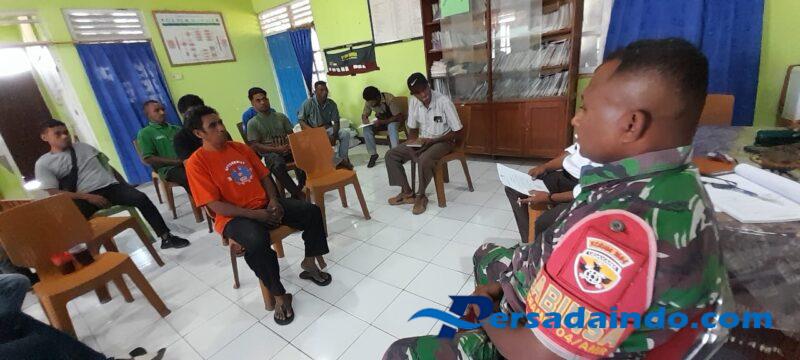 NTT-KUPANG, – Babinsa Bioba Baru Posramil Manubelon Koramil 1604-03/Naikliu, Serka Tarsisius PR, melaksanakan komunikasi sosial (Komsos) bersama Bhabinkamtibmas Brigpol Reynaldi dan Kepala Desa Bioba Baru, Bapak Yorim Naisunis, S.E., di Kantor Desa Bioba Baru, Kecamatan Amfoang Barat Daya, Kabupaten Kupang. Kegiatan ini turut dihadiri oleh warga masyarakat binaan yang peduli terhadap kelestarian lingkungan di wilayahnya. Rabu (24/09/2025).