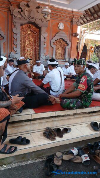 Babinsa Desa Bona Serda I Nyoman Widastra menyampaikan bahwa kehadirannya bersama Bhabinkamtibmas merupakan bagian dari tugas untuk memberikan rasa aman, sekaligus mempererat hubungan kemasyarakatan antara TNI-Polri dengan tokoh adat, tokoh agama, dan warga desa.