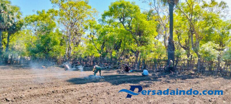 NTT-Kefamenanu, Jumat 13 Juni 2025, Terpancar semangat dan antusiasme dari wajah para petani yang bekerja dengan giat di bawah terik matahari, Mempersiapkan lahan tanam guna mendukung program ketahanan pangan nasional, Sertu Okto Kosat Babinsa 1618-03/Insut, bersama kelompok tani Manikin Kiusnasa, yang bertempat di Desa Humusu Wini, Kec. Insana Utara, Kab. TTU. Melaksanakan kegiatan gotong royong dalam mempersiapkan lahan tanam, kegiatan ini berlangsung dengan penuh semangat dan menunjukkan kolaborasi antara aparat Teritorial dan Rakyat.