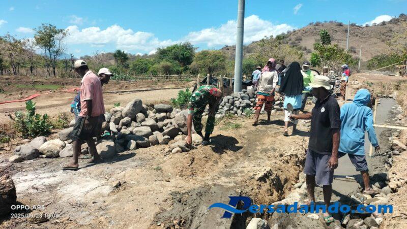 Nagekeo – Babinsa Koramil 1625-05/Aesesa, Praka Simiaon Soares Amorin, pada hari Kamis 25 September 2025 melaksanakan kegiatan gotong royong bersama kelompok Tani Rowet Permai dalam pengerjaan saluran irigasi permanen sebagai bagian dari program Optimasi Lahan Non Rawa untuk Mendukung Swasembada Pangan. Kegiatan tersebut berlangsung di area P3A Rowet Permai, Mbay Kiri, Desa Waekokak, Kecamatan Aesesa, Kabupaten Nagekeo.