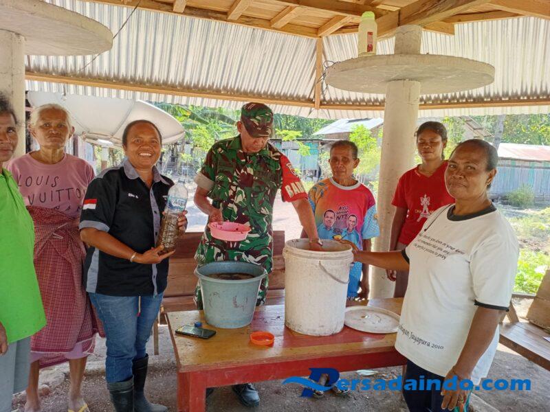NTT-Kefamenanu, Minggu 07 September 2025, Kebersamaan adalah kunci kekuatan, saling memahami, bekerja sama, dan membangun harapan, Babinsa Koramil 1618-04/Bisel, Sertu Hermenejildo De Almeida, melaksanakan pendampingan sekaligus monitoring kegiatan pembuatan pestisida nabati bersama Penyuluh Pertanian Lapangan (PPL) di Kelompok Wanita Tani (KWT) “Tbaiseun”, yang berlokasi di Desa Bannae, Kecamatan Insana Barat, Kabupaten Timor Tengah Utara (TTU).