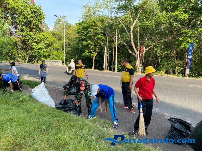 BALI – Badung, Babinsa Koramil 1611-08/Kuta Selatan, bersama warga dan dinas terkait di wilayah melakukan kegiatan gotong royong bersih-bersih, dalam rangka menjaga kebersihan lingkungan di sekitar Lapangan Lagun, yang bertempat di Jalan Pratama Nusa Dua, Kecamatan Kuta Selatan, Kabupaten Badung. Rabu, (29/10/25).