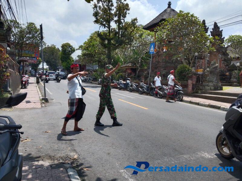 • Sinergi Babinsa dan Pecalang, Arus Lalu Lintas di Sekitar Piodalan Pura Desa Gede Lancar dan Tertib