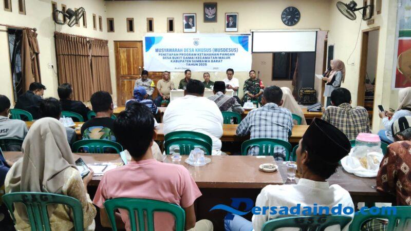 Sumbawa Barat, NTB – Babinsa Desa Bukit Damai, Koramil 1628-03/Sekongkang, Kopda Achmad Fahri menghadiri kegiatan Musyawarah Desa Khusus (Musdes) Penetapan Program Ketahanan Pangan Tahun 2025, bertempat di Balai Desa Bukit Damai, Kecamatan Maluk, Kabupaten Sumbawa Barat, pada Selasa (07/10/2025) pukul 07.30 WITA.