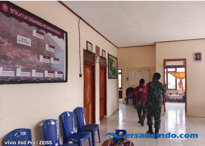 Ndona, Serka Nasrudin Latip, Babinsa Koramil 1602-01/Ende, melaksanakan kegiatan komunikasi sosial (Komsos), pemutakhiran data teritorial (Puldata Ter), serta pengamanan wilayah (Pamwil) di Kantor Kecamatan Ndona. Kegiatan ini berlangsung mulai pukul 09.00 Wita hingga selesai dengan aman, lancar, dan tertib.
