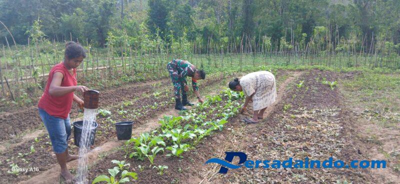 NTT-Sumba Timur.Babinsa Koramil 04/Tabundung Kodim 1601/Sumba Timur, Pratu Denis Nderu Peta, kembali menunjukkan kepeduliannya terhadap ketahanan pangan dengan mendampingi para petani sayur di Desa Billa,Kecamatan Tabundung,Kabupaten Sumba Timur.Pada Selasa (22/07/2025).