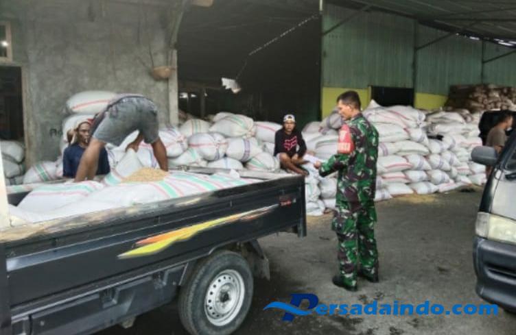 Lombok Timur – Babinsa Desa Sukaraja, Serka Dedi Fahrorozi bersama Petugas Penyuluh Lapangan (PPL) Ahmad Samsul melaksanakan kegiatan pendampingan penyerapan gabah petani oleh mitra Bulog di Dusun Sukasari, Desa Sukaraja, Kecamatan Jerowaru, Kabupaten Lombok Timur, Sabtu (5/4/2025).